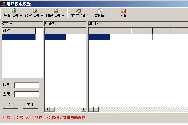 9.细致的权限管理软件提供了多级权限分配,权限已经涉及到了几乎每个操作,不同权限的操作员看到的和可以操作的内容可能完全不同。使权限分配灵活、细致。