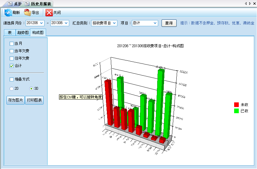 软件提供时时的费用收缴情况分析,并可通过自动生成的催费短信通知业户;在以往的工作中,计费和收费占用了大量的财务人员、服务人员的精力和时间,并且很容易出错,现在通过软件仅仅只需进行抄表、录入、生成几个简单操作即可开始收费,并且支持灵活的计费方式、预存款、找零转存等功能,方便快捷,准确无误;软件可以生成任何时段的收费明细及汇总,使查账、对账变得简洁清晰。